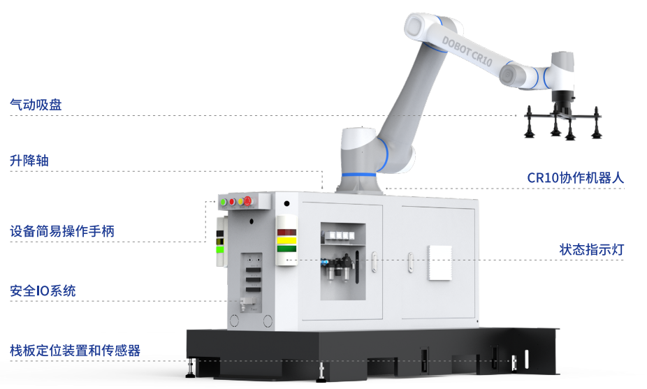 硬件設備所有元件均已連接,只需增加箱體上料裝置和氣泵,2-4小時即可在產線上搭建整套碼垛工作站。