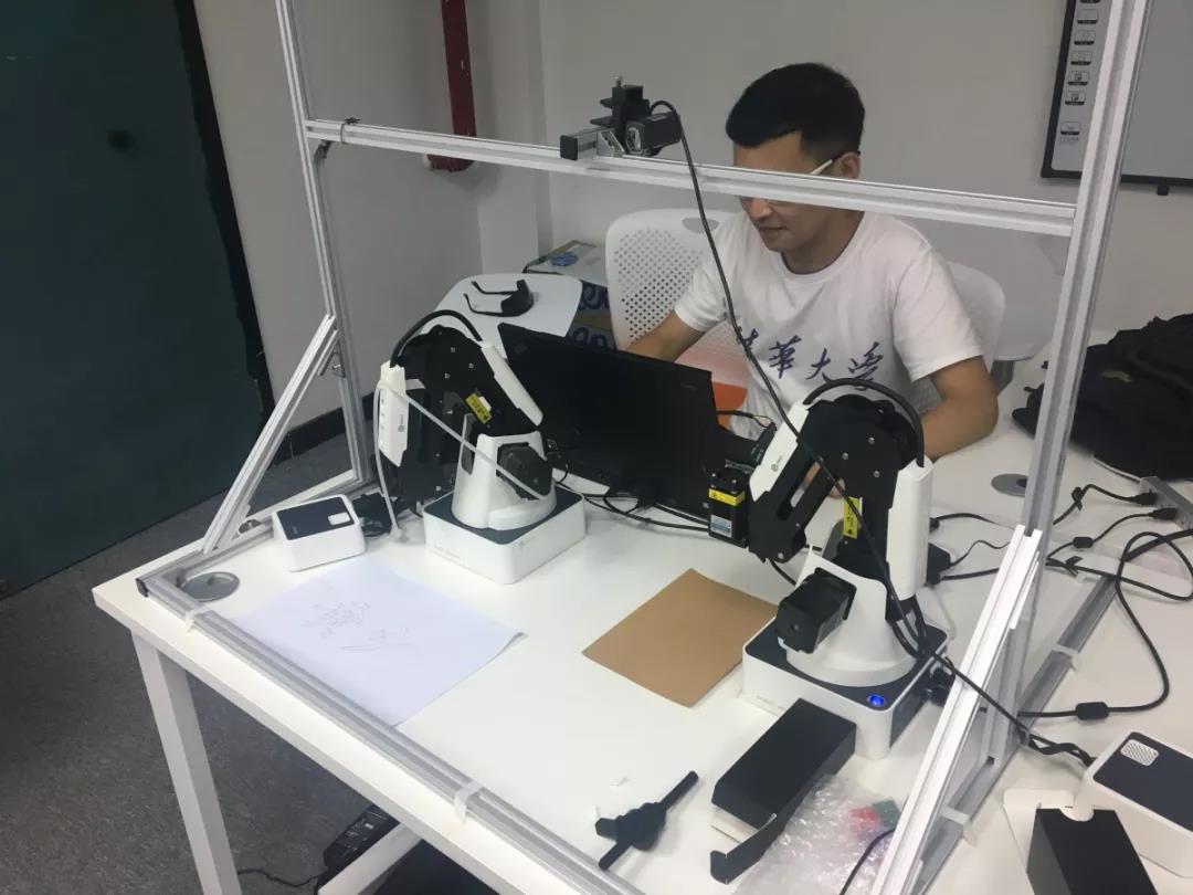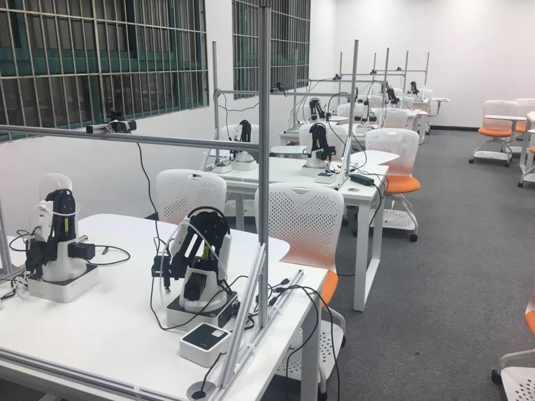 除此以外,能力比較強的學生,還可以對多機協同、機械臂工作空間干涉等復雜應用進行學習和開發等等。目前,該實驗室配備由越疆科技提供的 12 臺 Dobot 機械臂、12 臺相機及相關配套設施,可容納 30 人左右進行機械臂相關實驗操作。