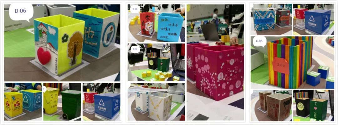 2020 年 Dobot 智造大挑戰比賽的主題是環保,小學組的參賽隊伍們需要自行設計比賽用到的分類垃圾桶,現場我們看到了很多的創意設計,給我們帶來了太多的驚喜~