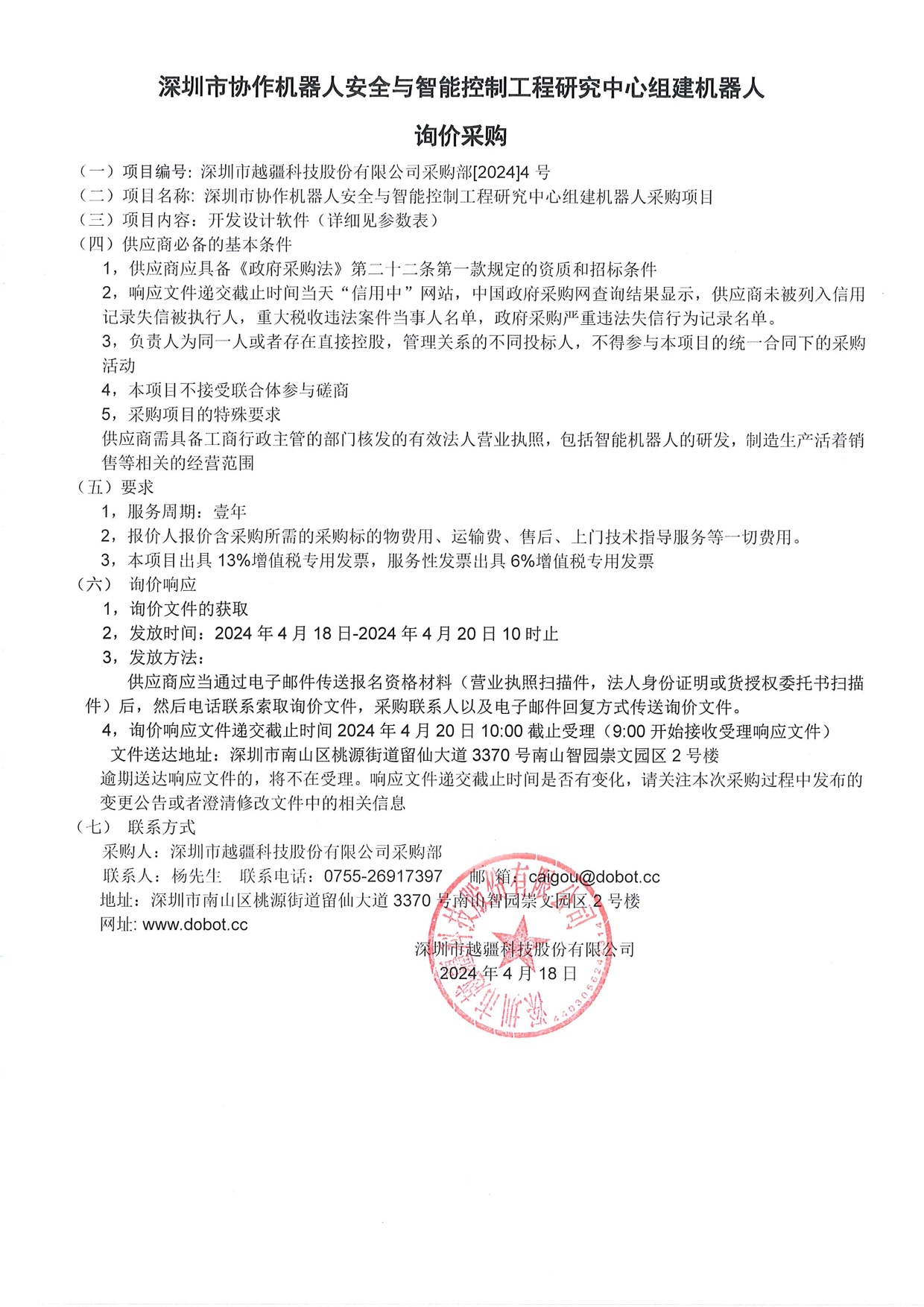 Home > News > 公司新聞 > 深圳市協作機器人安全與智能控制工程研究中心組建機器人詢價采購