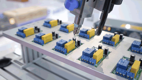 越疆協(xié)作機(jī)器人繼電器涂膠方案作業(yè)精度高達(dá)0.02 mm,涂膠不拉絲、不漏滴,涂膠效果一致性高。