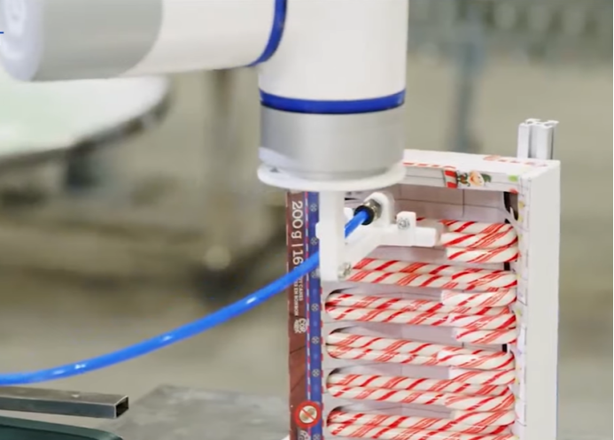 協作機器人可使貼標過程自動化,確保在各種包裝類型上精確且一致地張貼標簽。例如,在一家乳制品加工廠,協作機器人能夠高效地給牛奶紙盒、酸奶容器或奶酪塊貼標,維護食品安全和可追溯性標準。它們的精確抓取技術能夠小心處理標簽,其速度和效率使其可以在大批量環境中快速完成貼標。憑借其靈活性和可重新編程性,協作機器人能夠輕松適應不同的產品和標簽設計。